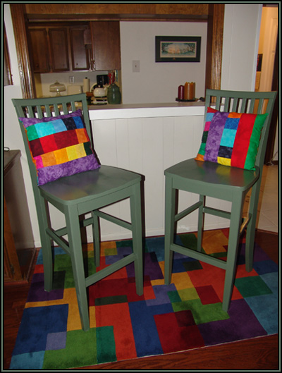 Cynthia figured she could paint them to match the color scheme and make some custom cushions.